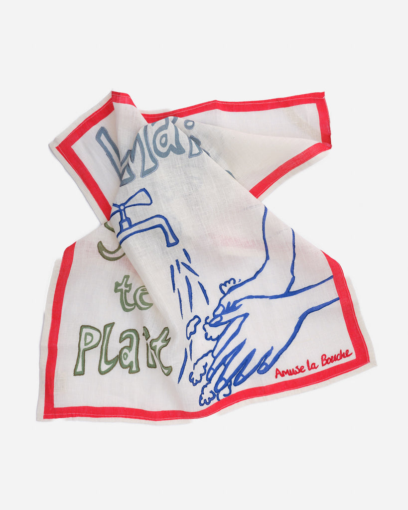 Crafted from premium European linen, this tea towel is digitally printed with eco-friendly dyes and complemented by delicate embroidery details. Each piece is approximately 50 x 70 cm, though slight variations in size and colour may occur due to the handcrafted nature of the product.