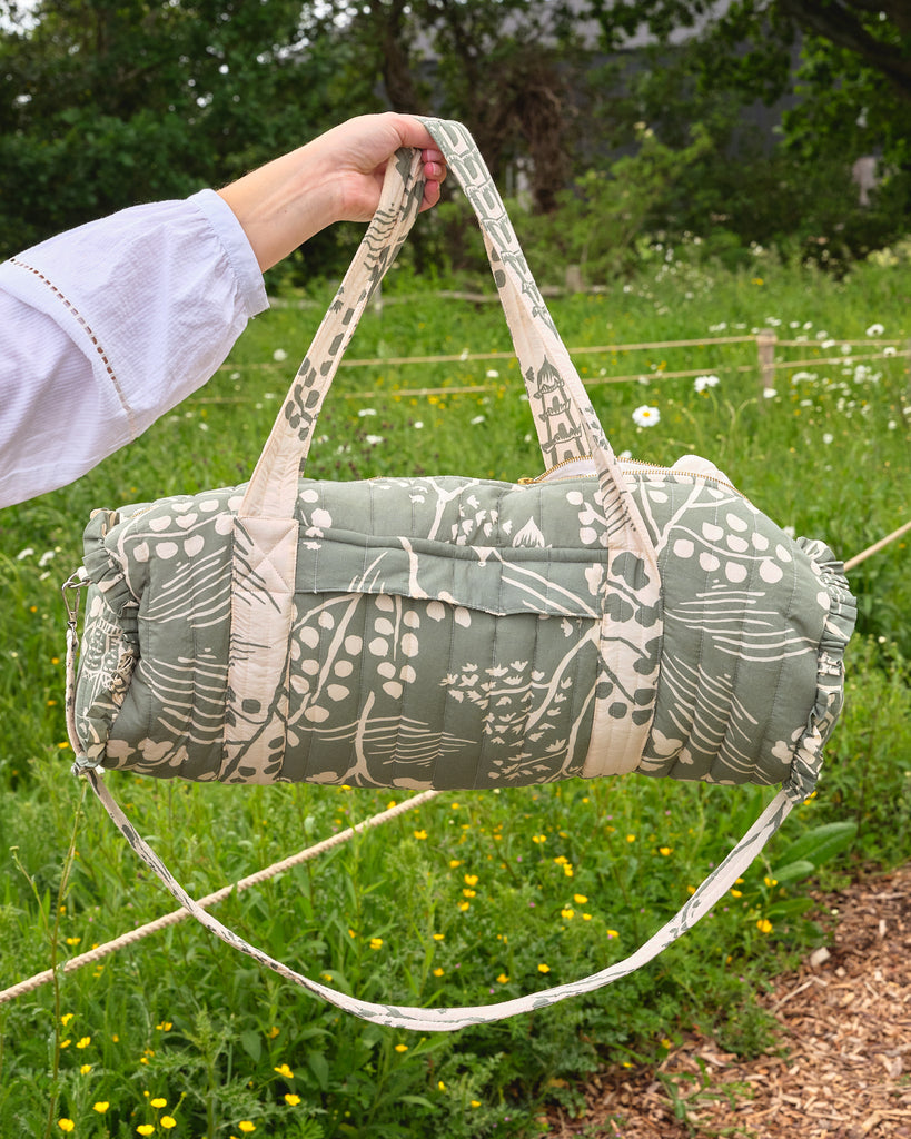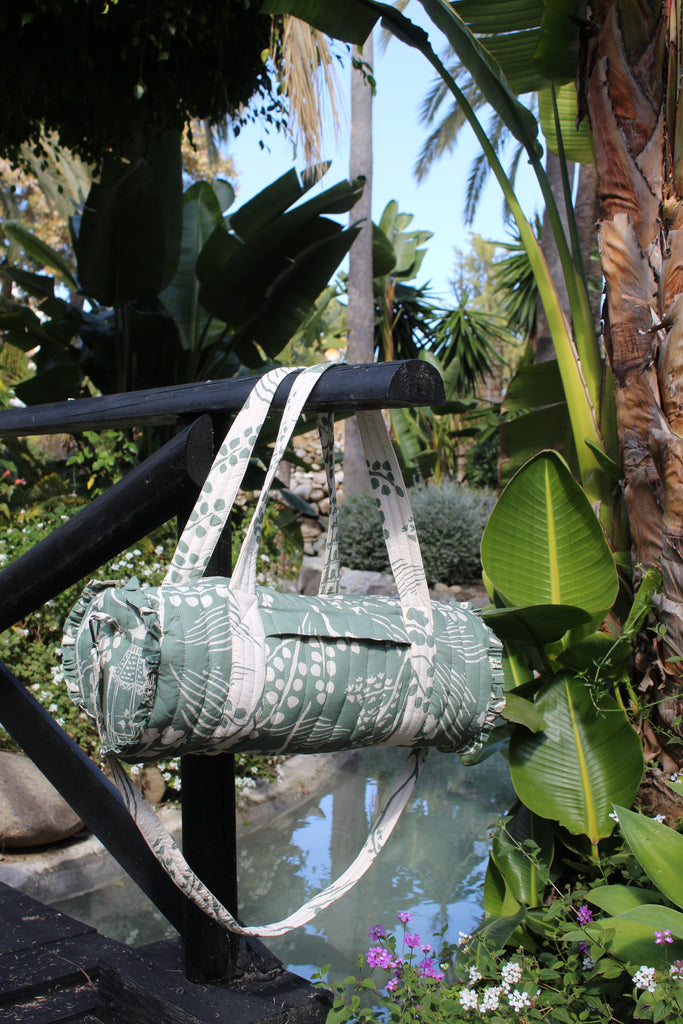 This quilted bag is made from 100% cotton and printed with eco-friendly dyes. Measuring 40 x 20 cm, it combines style with everyday functionality.