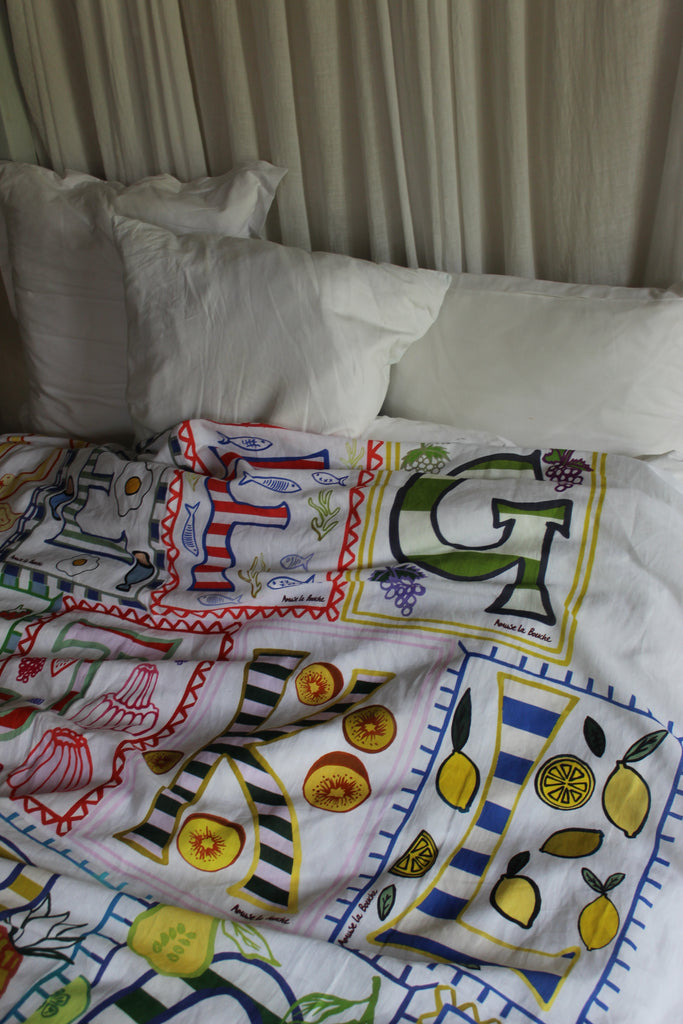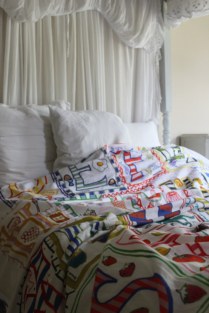 Crafted from premium European linen, this linen is digitally printed with eco-friendly dyes. Each piece is 280 x 200 cm, perfect to use as a throw, tablecloth, or even a curtain.