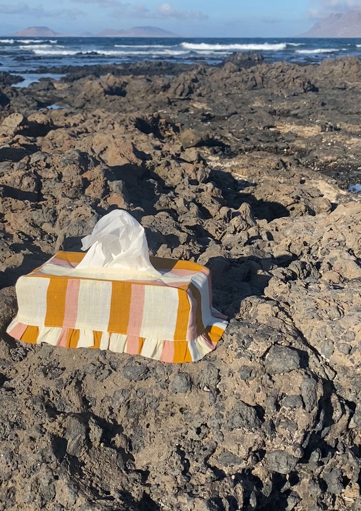 Ochre & Blush Stripe Rectangle Tissue Box Cover