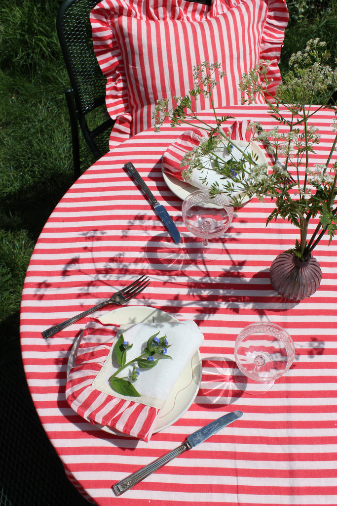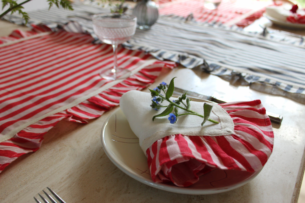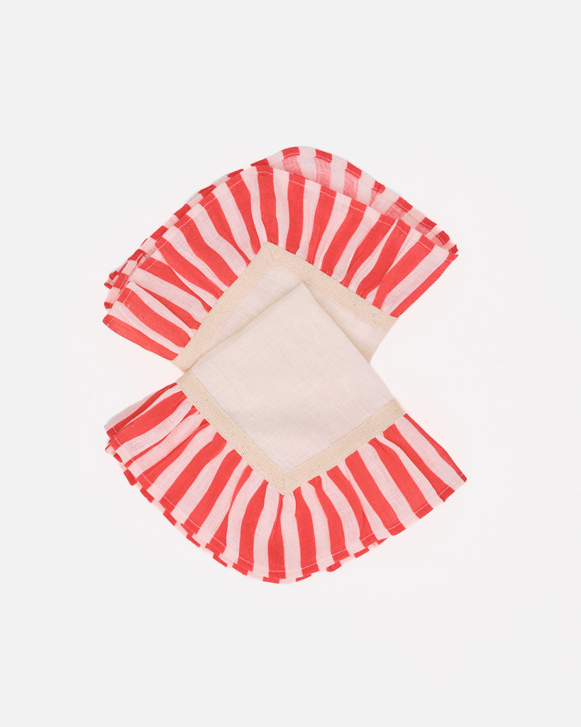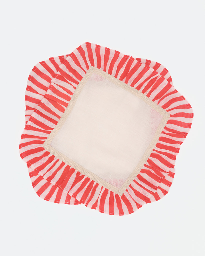 Crafted from premium European linen, these napkins are digitally printed with eco-friendly dyes. Each piece is 33 x 33cm including 6.5cm ruffle.