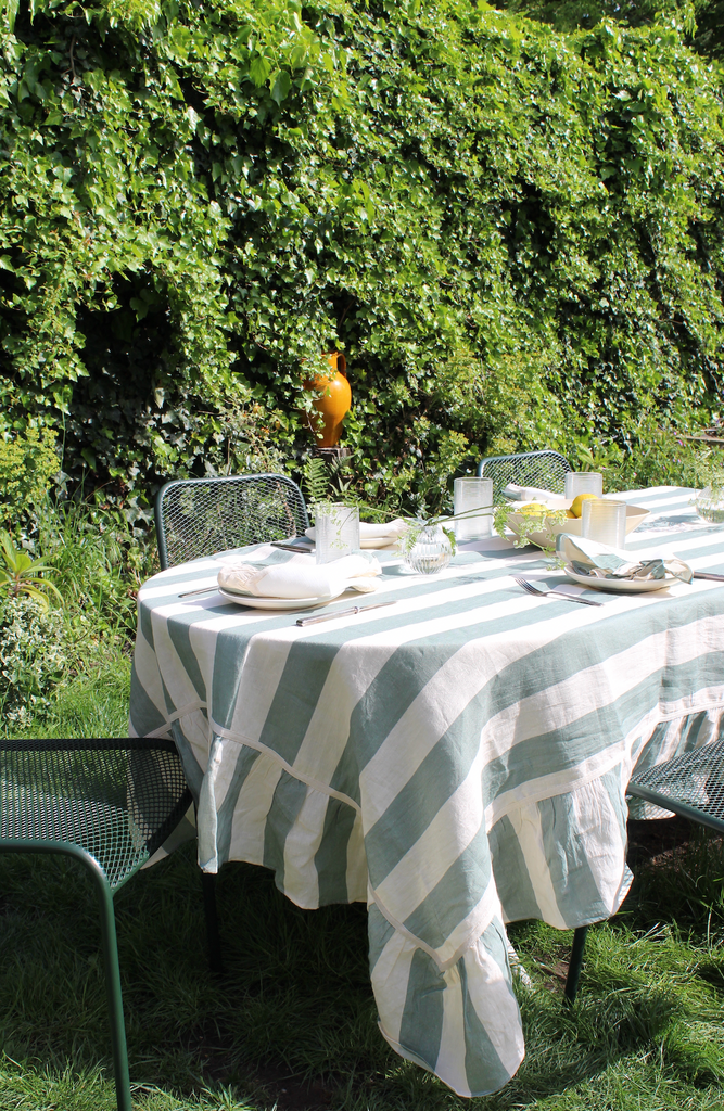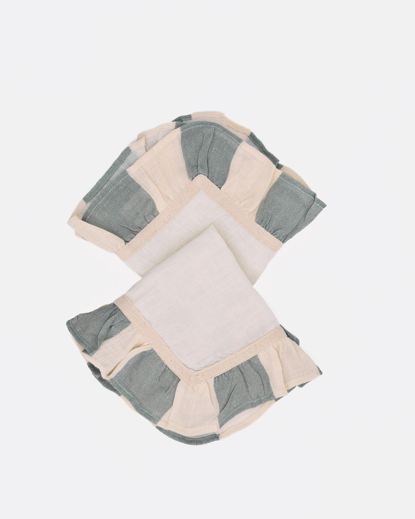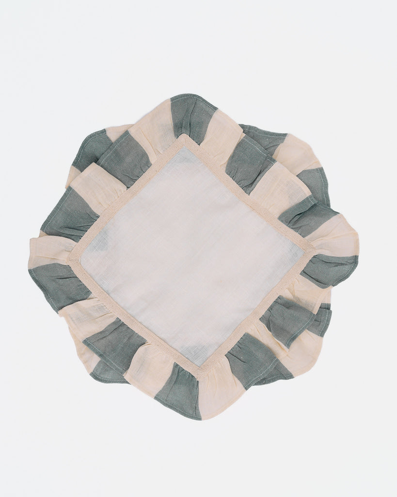 Crafted from premium European linen, these napkins are digitally printed with eco-friendly dyes. Each piece is 33 x 33cm including 6.5cm ruffle.