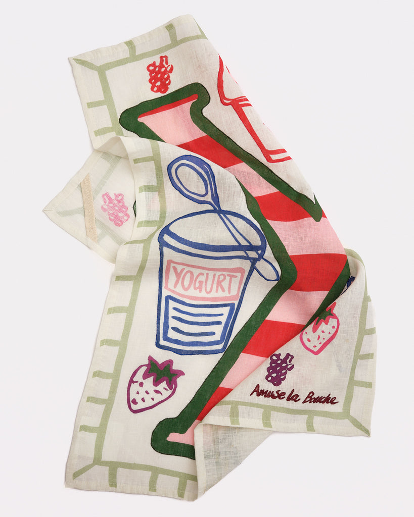 Crafted from premium European linen, this tea towel is digitally printed with eco-friendly dyes and complemented by delicate embroidery details. Each piece is approximately 50 x 70 cm, though slight variations in size and colour may occur due to the handcrafted nature of the product.