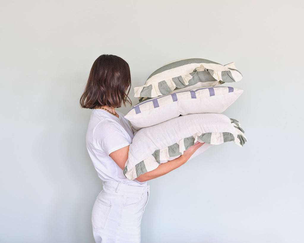 Thoughtfully made in small batches by skilled artisans using natural materials, eco-friendly pigment dyes, and recyclable packaging. The 100% linen fabric is derived from the flax plant—a resilient, eco-conscious crop that requires no irrigation or harmful pesticides and is often harvested by hand. This ensures every piece reflects our commitment to quality, elegance, and environmental responsibility.